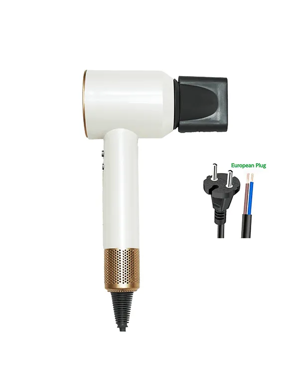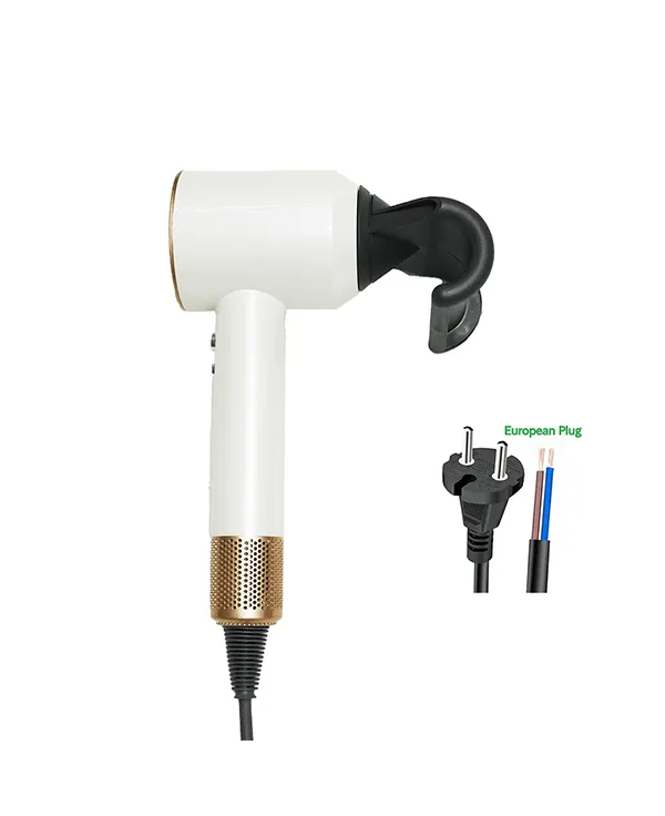 The Energy Efficient Hair Dryer in an elegant golden base and pearl white body finish with EU plug represents the perfect combination of eco-friendly performance and advanced hair care technology. Powered by a sophisticated 1450W DC brushless motor operating at 110,000 RPM, this high-speed hair dryer delivers exceptional airflow for rapid drying while optimizing energy consumption through intelligent power management. Its straight-barrel design ensures maximum airflow efficiency, reducing energy waste without compromising performance. Weighing only 0.9kg with compact dimensions of 35×24×9cm, this model offers excellent portability and easy storage. Compatible with AC 220V voltage and featuring an EU plug, it is ideally suited for environmentally conscious European households and global users. The integration of negative ion technology helps seal hair cuticles, reduce frizz, and enhance natural shine, while 3 precision speed and heat settings allow users to customize their styling experience while minimizing energy usage.