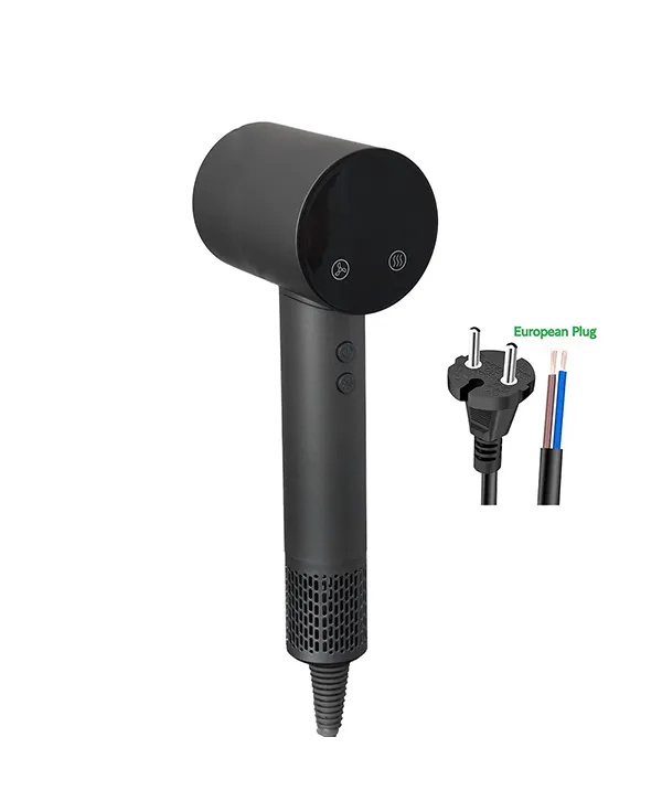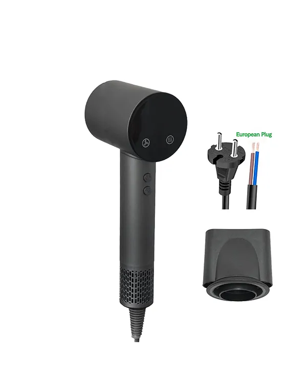 The Powerful Digital display hair dryer in a sophisticated black finish with EU plug combines robust performance with advanced digital technology, delivering exceptional styling results for demanding users. Powered by a high-torque 1200W DC brushless motor operating at 110,000 RPM, this digital display hair dryer generates strong airflow for rapid drying of all hair types, including thick and curly hair. The integrated digital screen provides clear real-time monitoring of temperature and speed settings, enabling users to maintain optimal styling conditions with precision. Weighing only 0.8kg with compact dimensions of 29×8×4cm, this model balances powerful performance with user-friendly handling. Compatible with AC 220V voltage and featuring an EU plug, it is perfectly suited for European markets and users seeking reliable, high-performance hair care technology.