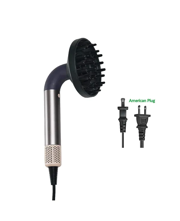 The Curved Design Hair Dryer in a sophisticated black and purple color scheme combines advanced ergonomic engineering with professional-grade performance for modern hair care. Powered by a high-efficiency 1200W DC brushless motor operating at 110,000 RPM, this model delivers powerful airflow that reduces drying time significantly while maintaining hair health. Its unique curved body structure is designed to fit naturally into the user’s palm, offering a comfortable, non-slip grip that minimizes wrist fatigue and enhances control during styling. Compatible with AC 110V voltage, it is suitable for global use in households, hotels, and travel. Equipped with negative ion technology, the dryer helps reduce frizz, enhance shine, and protect hair from heat damage. With 3 customizable speed and heat settings, users can easily tailor their drying experience for different hair types and styles. Weighing only 0.8kg and featuring compact dimensions of 29×8×4cm, this dryer is both portable and storage-friendly.