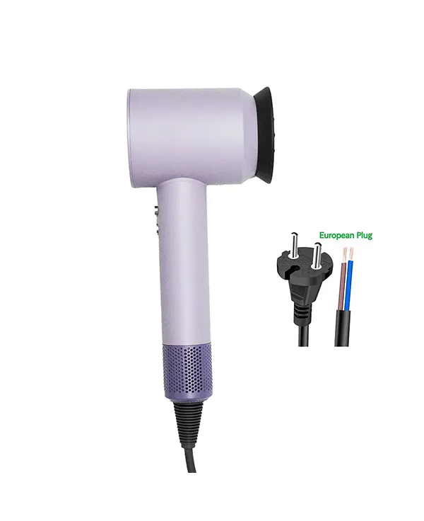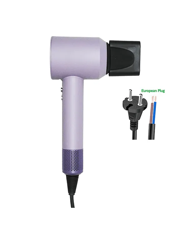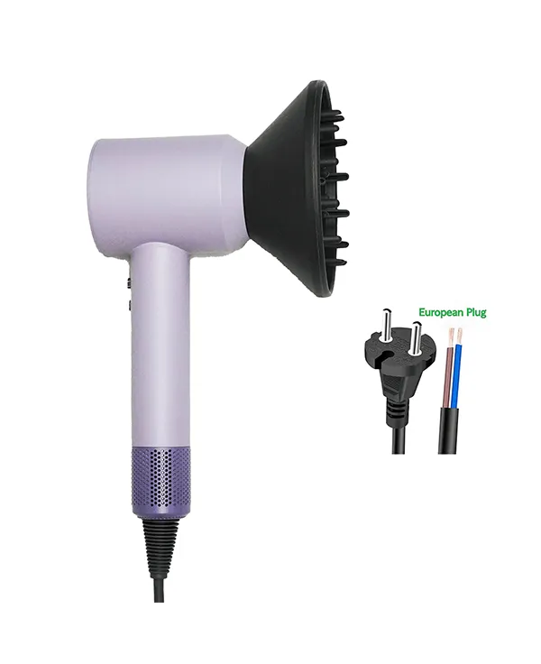 The Fashionable hair dryer in an elegant light purple finish combines stylish design with high-performance functionality, making it an ideal choice for modern users who value both aesthetics and efficiency. Powered by a robust 1450W DC brushless motor that operates at 110,000 RPM, this high-speed hair dryer delivers powerful airflow for quick and efficient drying of all hair types. Its sleek straight-tube design not only looks modern but also ensures even heat distribution and consistent performance. Compatible with AC 220V voltage and featuring an EU plug, this model is perfectly suited for European households, hotels, and travelers. Enhanced with negative ion technology, it effectively reduces static, enhances shine, and protects hair from heat damage. With 3 speed and heat settings, users can easily customize their styling experience for personalized results. Weighing just 0.9kg and measuring 35×24×9cm, this lightweight Fashion hair dryer is both portable and practical for daily use.
