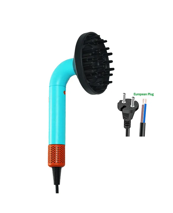 The Curved Nozzle Hair Dryer in a vibrant cyan finish with EU plug introduces an innovative approach to hair styling through its uniquely designed nozzle system that enhances airflow precision and user comfort. Powered by a high-performance 1200W DC brushless motor operating at 110,000 RPM, this high-speed hair dryer delivers powerful airflow for fast and efficient drying of all hair types. Its ergonomic curved nozzle is engineered to provide targeted airflow, allowing users to easily style hard-to-reach areas while reducing arm strain. Weighing only 0.8kg with compact dimensions of 29×8×4cm, this lightweight dryer is perfectly balanced for comfortable handling during extended use. Compatible with AC 220V voltage and featuring an EU plug, it is ideally suited for European households, hotels, and travelers seeking both performance and innovation.