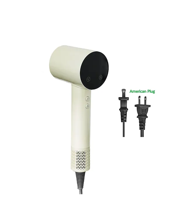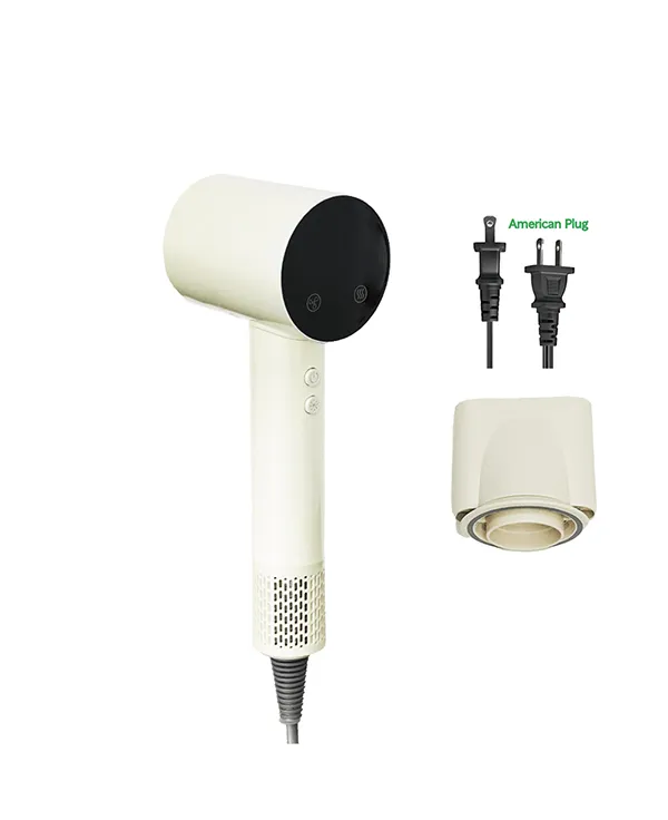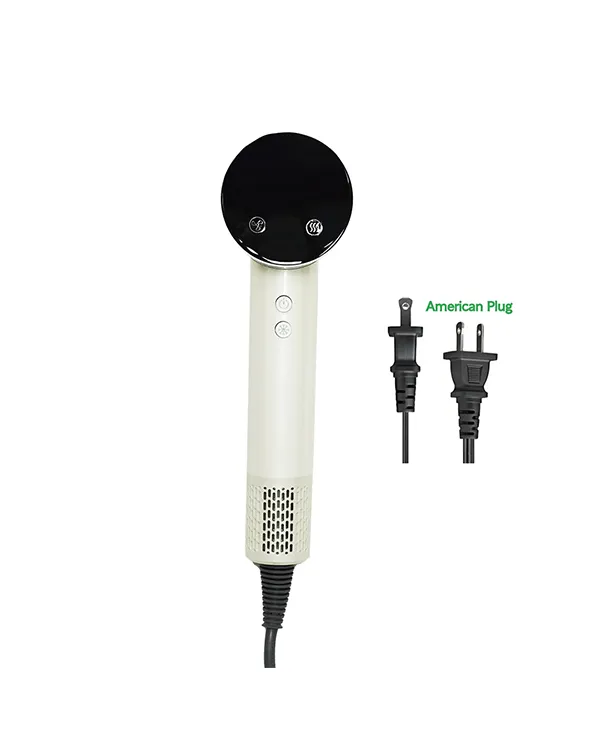 The Digital display hair dryer in an elegant pearl white finish combines advanced technology with user-friendly functionality, offering a sophisticated styling experience for modern households. Powered by a high-performance 1200W DC brushless motor that operates at 110,000 RPM, this dryer delivers powerful airflow for fast and efficient drying across all hair types. Its standout feature is the integrated LCD screen, which clearly displays real-time temperature and speed settings, allowing users to precisely monitor and adjust heat levels with ease. Compatible with AC 110V voltage, it is ideal for global use in homes, hotels, or while traveling. Enhanced with negative ion technology, the dryer helps reduce static, lock in moisture, and enhance hair shine. With 3 heat settings and 3 wind speeds, along with a memory function that saves preferred configurations, this model offers fully customizable styling. Weighing just 0.8kg and compactly designed at 29×8×4cm, it is both portable and practical for everyday use.