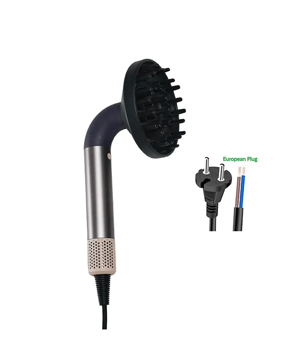 The Customizable curved tube hair dryer in a striking black and purple finish with EU plug offers a perfect blend of personalized styling and ergonomic innovation for modern hair care enthusiasts. Powered by a high-performance 1200W DC brushless motor operating at 110,000 RPM, this curved-tube hair dryer delivers powerful airflow for efficient drying, while its uniquely designed curved barrel ensures comfortable handling and superior control. The ergonomic curved shape reduces wrist strain, making it ideal for extended styling sessions. Weighing only 0.8kg with compact dimensions of 29×8×4cm, this model combines professional power with user-friendly portability. Compatible with AC 220V voltage and featuring an EU plug, it is perfectly suited for European markets and global users seeking customizable beauty solutions.