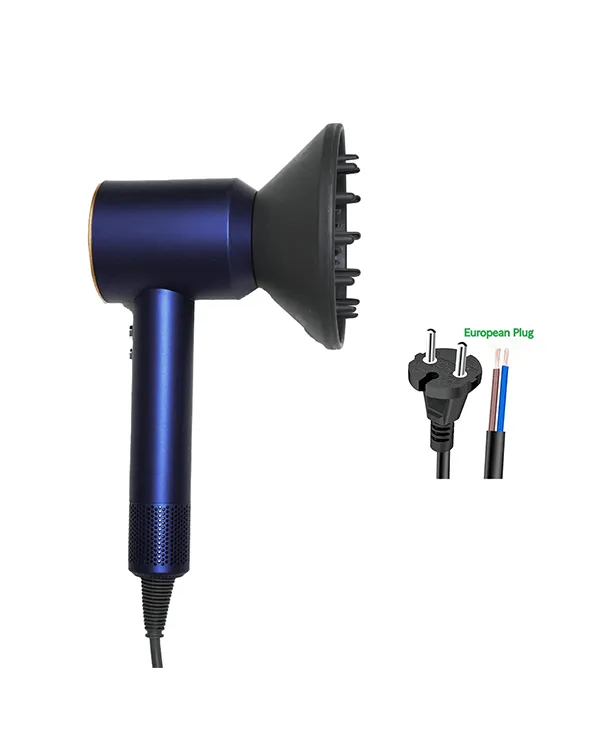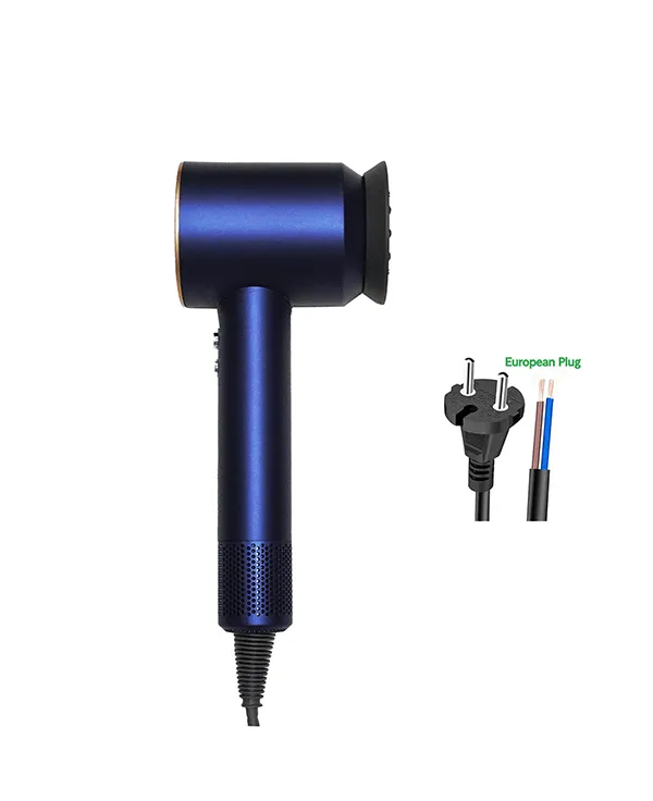 The Household Portable Hair Dryer in an elegant gold and blue finish with EU plug is designed to meet the daily styling needs of modern families, combining powerful performance with user-friendly portability. Powered by a robust 1450W DC brushless motor operating at 110,000 RPM, this high-speed hair dryer delivers strong airflow for quick and efficient drying of all hair types. Its straight-tube design ensures consistent airflow distribution, while the compact dimensions of 35×24×9cm and lightweight construction of 0.9kg make it easy to store in bathroom cabinets or carry during travel. Compatible with AC 220V voltage and equipped with an EU plug, this model is perfectly suited for European households and international use. The integration of negative ion technology helps reduce frizz, enhance shine, and minimize heat damage, while 3 speed and heat settings provide customizable styling options for different family members.