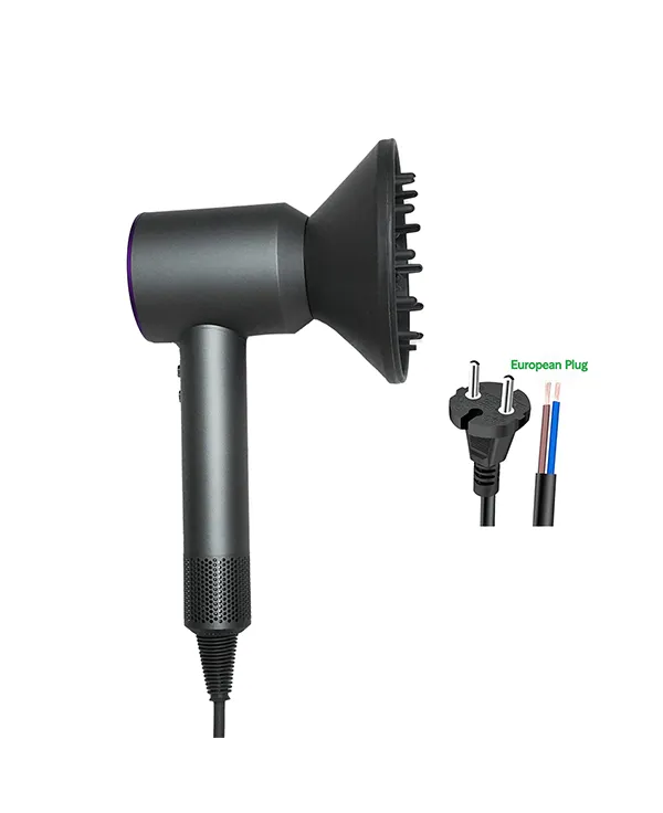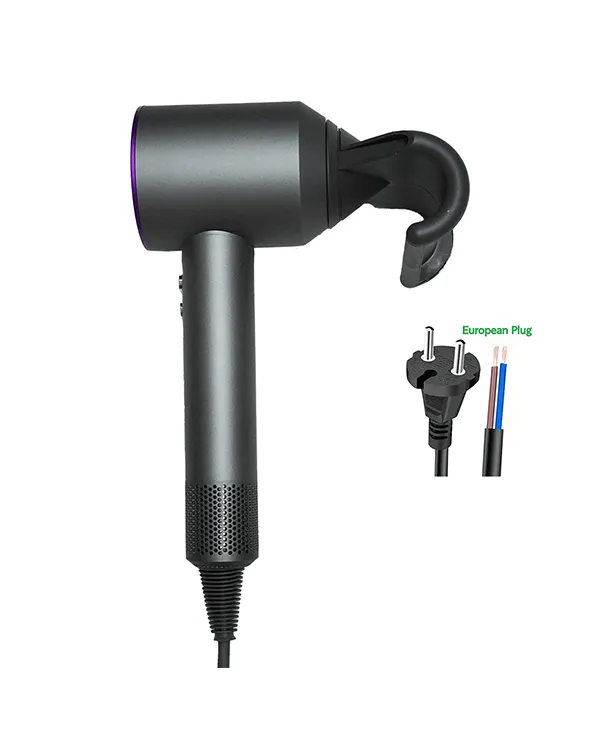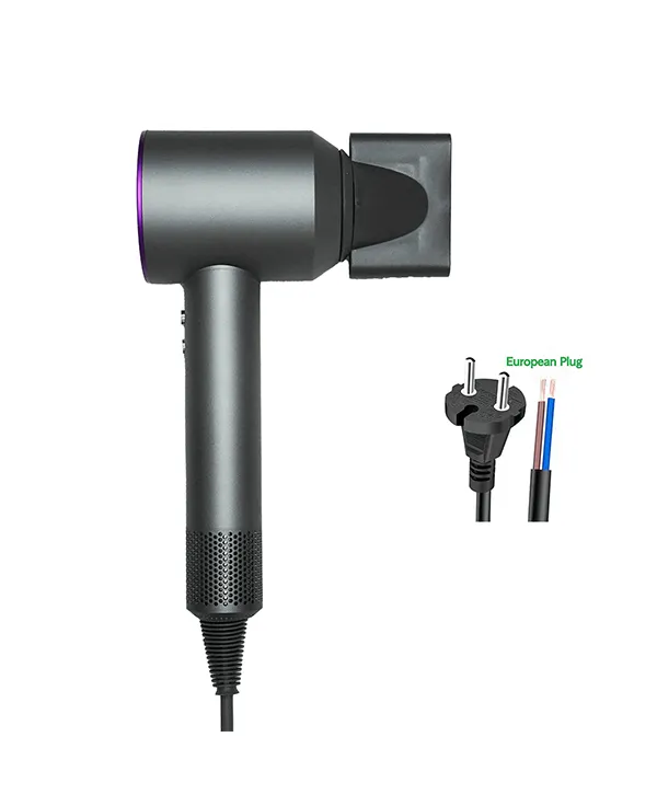 The Fashionable Design Hair Dryer in a striking purple and black color scheme with EU plug combines aesthetic appeal with high-performance functionality, creating the perfect styling tool for style-conscious users. Powered by a robust 1450W DC brushless motor operating at 110,000 RPM, this high-speed hair dryer delivers exceptional airflow for quick and efficient drying of all hair types. Its sleek straight-barrel design not only enhances its modern look but also ensures optimal airflow dynamics for consistent performance. Compatible with AC 220V voltage and featuring an EU plug, this model is perfectly suited for European markets and international travelers. The incorporation of negative ion technology helps reduce frizz, enhance shine, and protect hair from heat damage, while 3 speed and heat settings provide customizable styling options. Weighing just 0.9kg with dimensions of 35×24×9cm, this Fashion hair dryer balances powerful performance with portable convenience.
